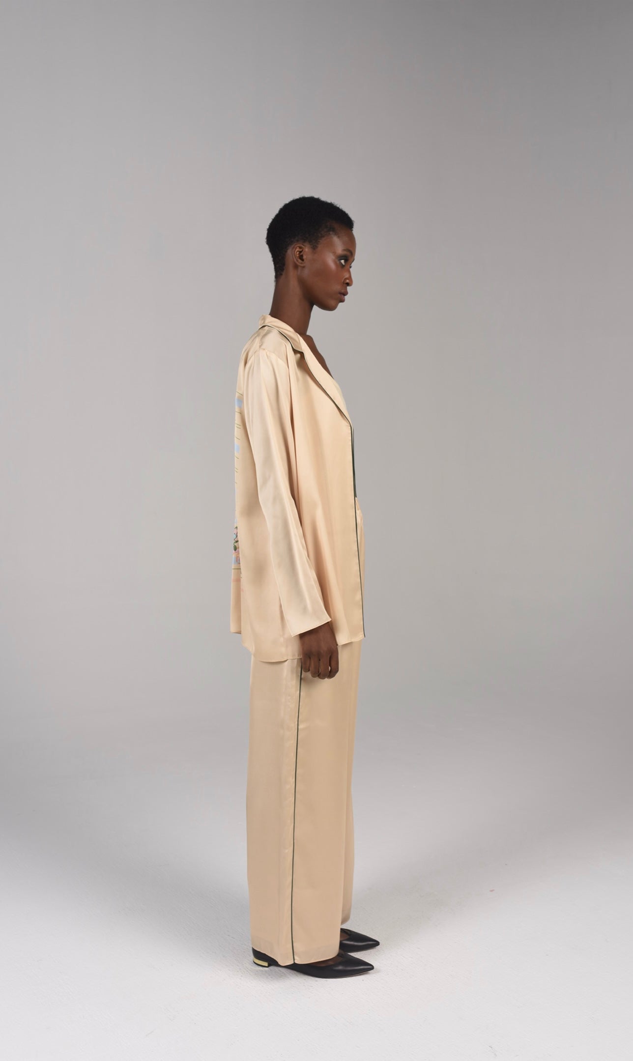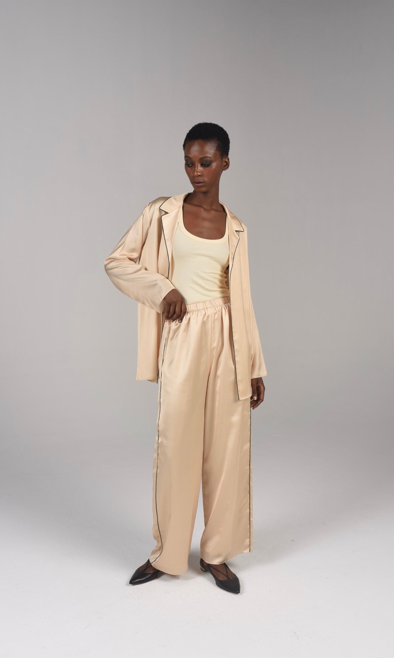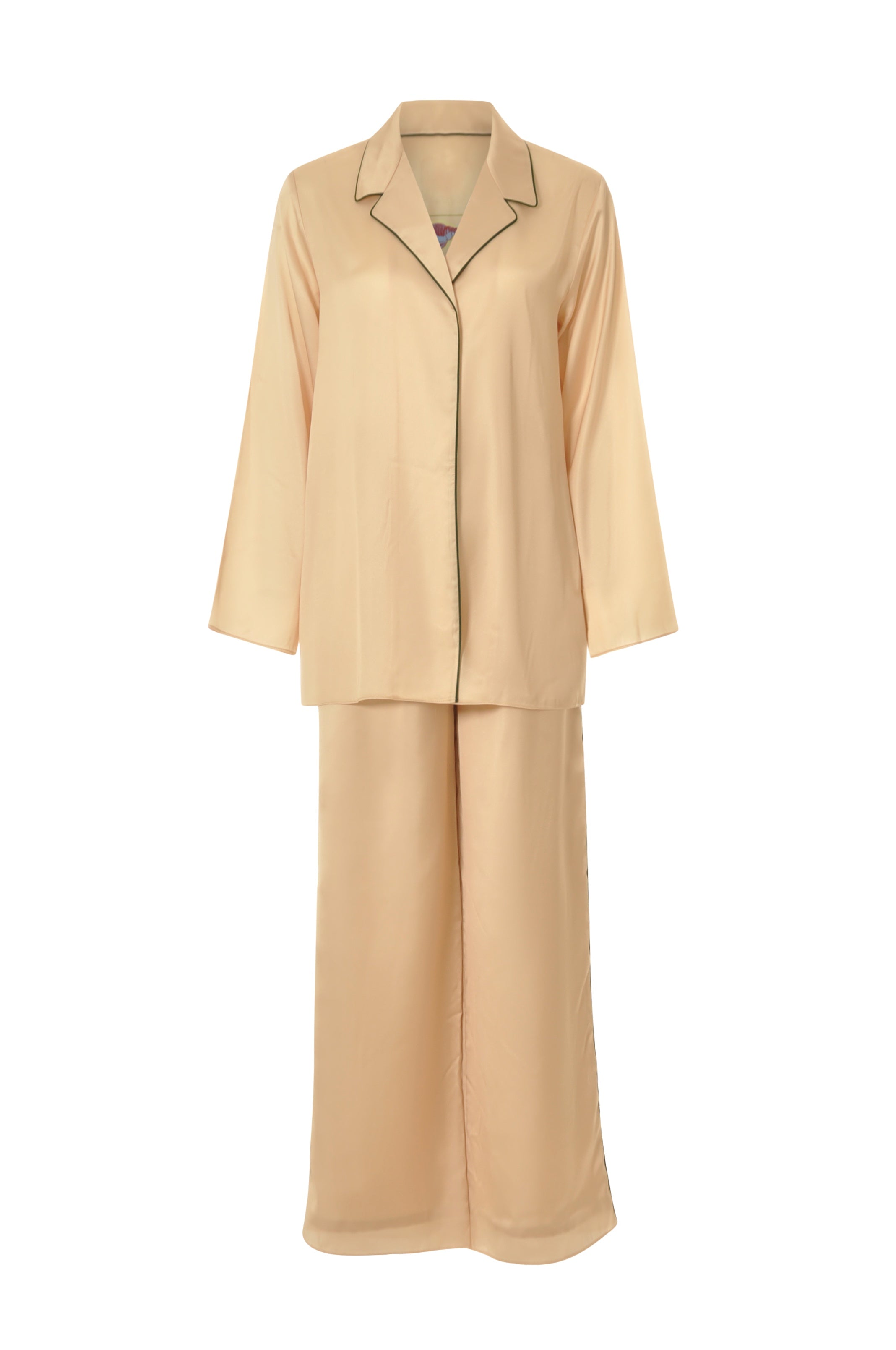 Black piping Co-ord silk set. "Please note: Sale items are non-refundable."