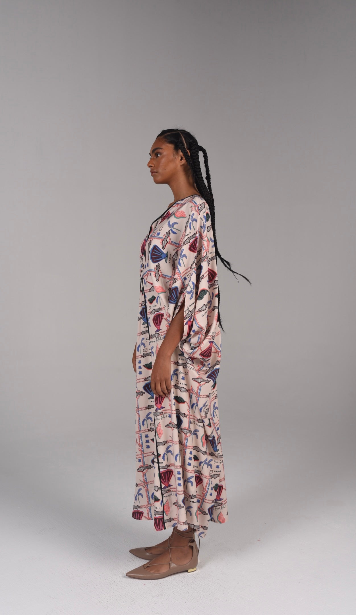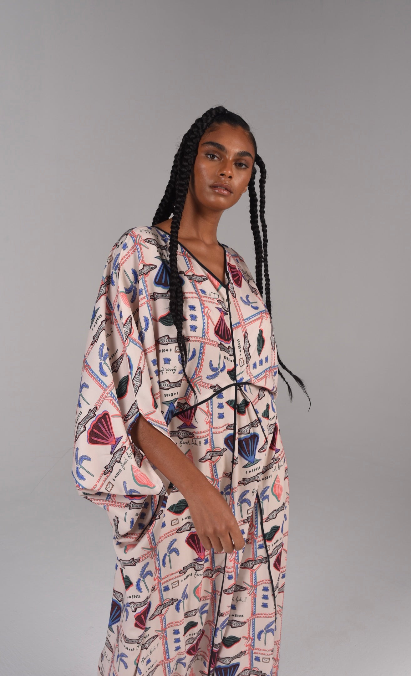 Seashell crêpe caftan